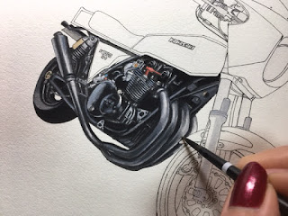 | ライブスケッチ・ファインでの製作デス。 エンピツスケッチの上から 細いペンで清書し 水彩絵の具で色を塗ります。 |