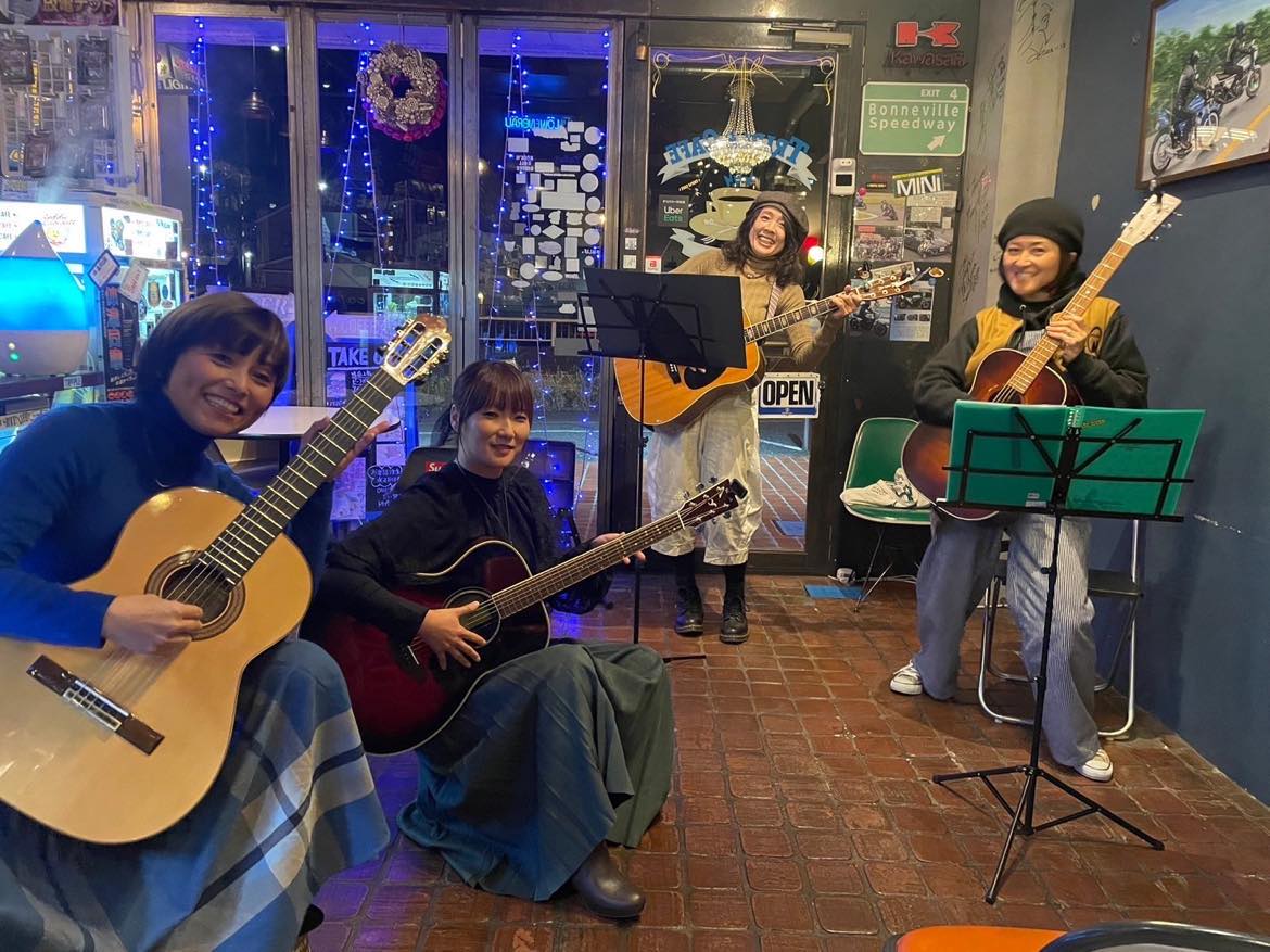 4人でギターを担いで参加しました♪